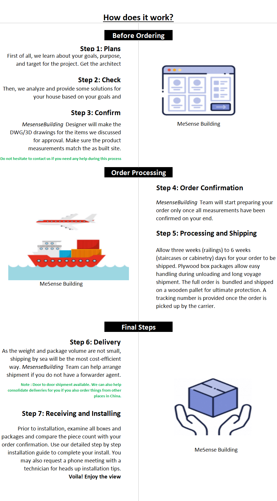 MesenseBuilding takes great pride in our work and are committed to providing our customers with top-notch products and exceptional customer service, we cater to the middle and high-end market segments And, if you’re located abroad, we can help arrange door-to-door shipping for your convenience.